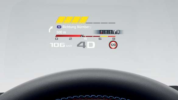 تعرض شاشة العرض على الزجاج الأمامي من BMW معلومات القيادة ذات الصلة، مثل: السرعة أو تعليمات الملاحة في مجال رؤيتك بشكل مباشر.[1]