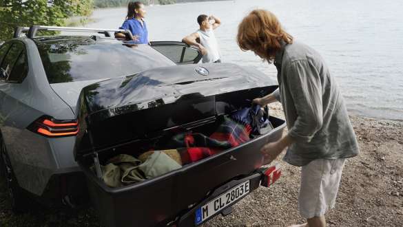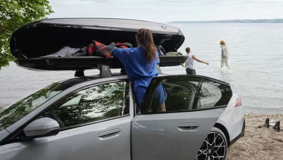 صندوق سطح السيارة قابل للغلق، لونه أسود/ تيتانيوم فضي، يسهل الوصول إليه من كلا الجانبين ويسع 520 لتراً، ومتوافق مع جميع أنظمة الحامل السطحي من BMW.
