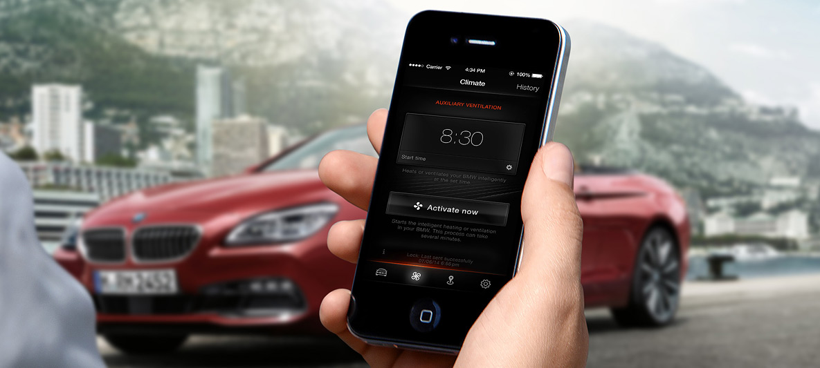 مع خدمات التحكم عن بعد وتطبيقات My BMW Remote المجانية (والمتوفرة من Apple App Store و Google Play Store)، يمكنك الاستفادة من عدة وظائف تتعلق بالسيارة، مثل قفل السيارة وإلغاء قفلها، وذلك بتشغيلها عن بعد. كما يمكن نقل عناوين الوجهات مباشرة عبر محرك البحث الإلكتروني من Google™ إلى نظام الملاحة في حال توفره. وبالإضافة لذلك، يمكن عرض موقع السيارة أيضاً. لاستخدام هذه الوظيفة المبتكرة، عليك تفعيل خدمات التحكم عن بعد مرة واحدة من خلال بوابة عملاء My BMW ConnectedDrive على الرابط www.bmw-connecteddrive.com.