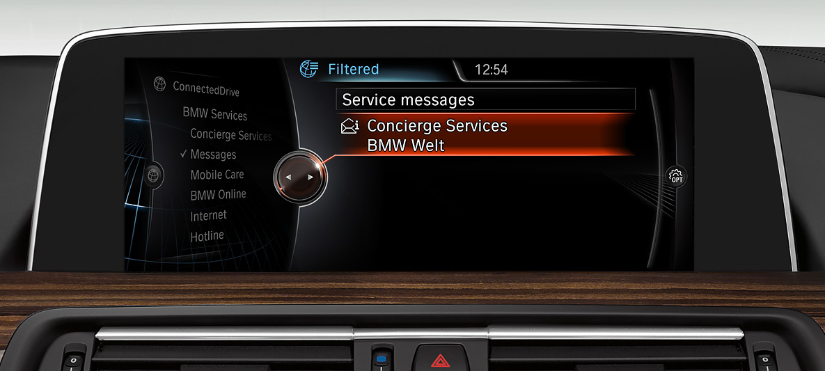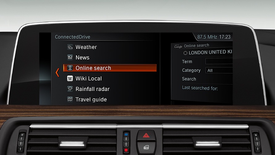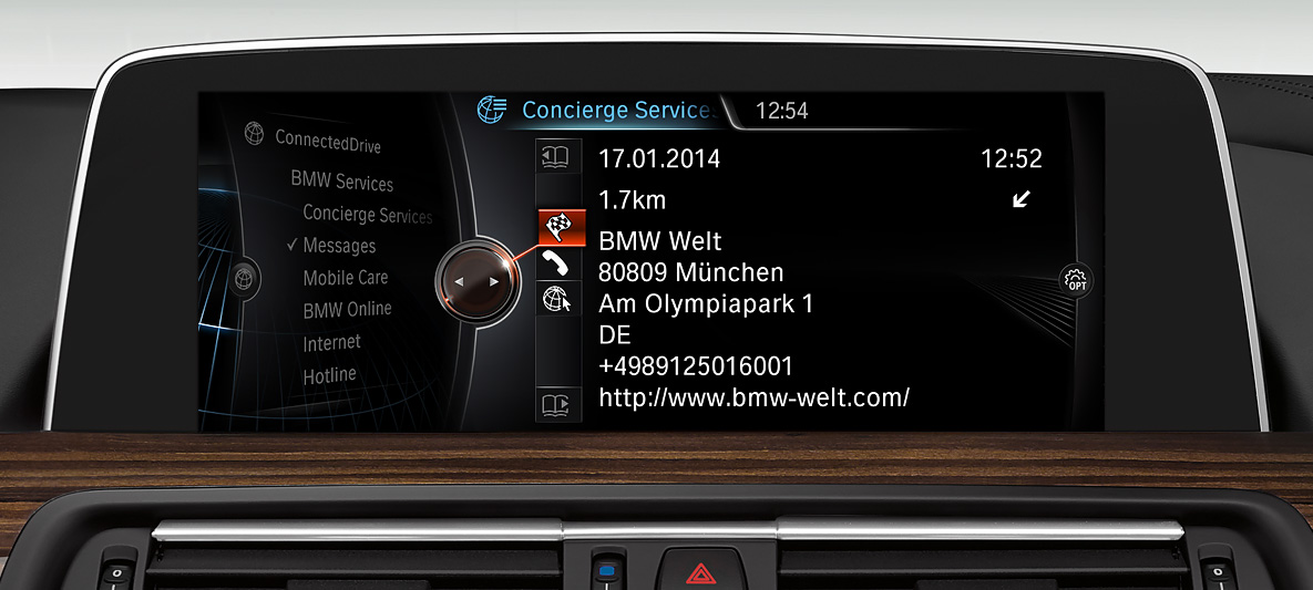 تنقل بين مزايا الاتصال والمعلومات والترفيه بطريقة جديدة كلياً عن طريق الخدمات والتطبيق الموجودة في نظام ConnectedDrive. يمكنك ببساطة تحميل التطبيقات مثل "BMW Connected" على هاتفك الذكي ووصل الجهاز بخدمة iDrive الموجودة في BMW الفئة السادسة المكشوفة عن طريق المحول الملحق. يمكنك هذا من الدخول إلى رسائل "فيسبوك" و "تويتر" وبيانات التقويم على شاشة السيارة أو الحصول على المعلومات حول الموقع الحالي عن طريق "Wiki Local" مباشرة في مقصورة القيادة.