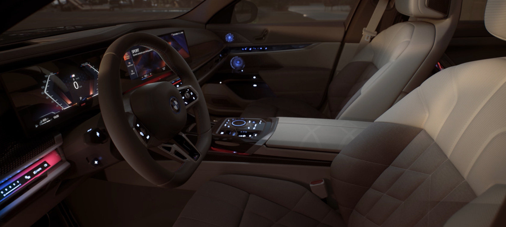 شاشة العرض المنحنية في السيارة BMW i7 M70 xDrive