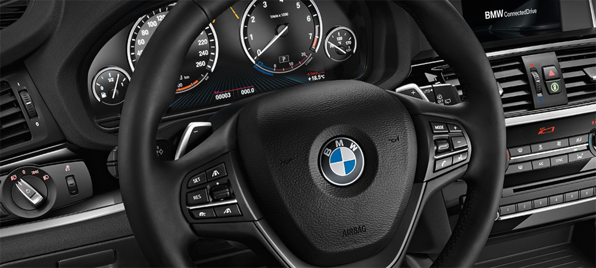 مقصورة داخلية فارهة، نظام صوتي فريد وشعور استثنائي بالرحابة – ترضي أجواء سيارة BMW X4 أصحاب أصعب الأذواق والمتطلبات. واعتماداً على ذوقك الشخصي، يمكنك أن تضيف لمسات مميزة مع تطعيمات الخشب عالية الجودة أو المظهر المعدني المميز. أما مقدمة لوحة التحكم الاختيارية بالأجواء في منطقتين والقسم العلوي منها فتتميز بلون أسود أنيق. تتوفر مجموعة من خيارات التنجيد بالجلد مع تباين معبّر بالغرز كلمسة مثالية على الأجواء الفردية. إضاءة غير مباشرة بلونين، تسمح لك بتعديل الإضاءة الداخلية لتناسب مزاجك، وهي جزء من مجموعة الإضاءة الاختيارية التي تحتوي كذلك على أضواء القراءة الأمامية والخلفية وعلى مرايا مضاءة وإضاءة موضع القدمين للسائق والراكب الأمامي. كما تتضمن المجموعة كذلك إنارة المخارج والإضاءة المحيطة بمقابض الأبواب الخارجية.