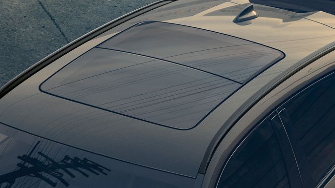 تمنحك الفتحة في السطح الزجاجي البانورامي Sky Lounge هذا الشعور بالرحابة والاتساع، كما تمنحك في وقت الظلمة أجواء إضاءة رائعة بفضل الرسومات الضوئية المستخدم فيها أنظمة مصابيح LED.