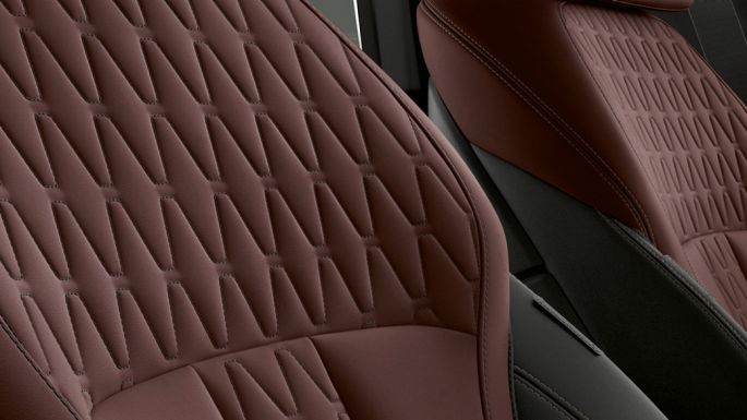 تضمن المقاعد الرياضية ذات التصميم الأورجونومي المريح مع دعامة أسفل الظهر أقصى درجات الراحة للسائق والراكب. فقد تم تنجيدها، مثلها مثل لوحة عدادات القيادة، بجلد سينسافين الاصطناعي العالي الجودة المبطن برسومات ديكورية.