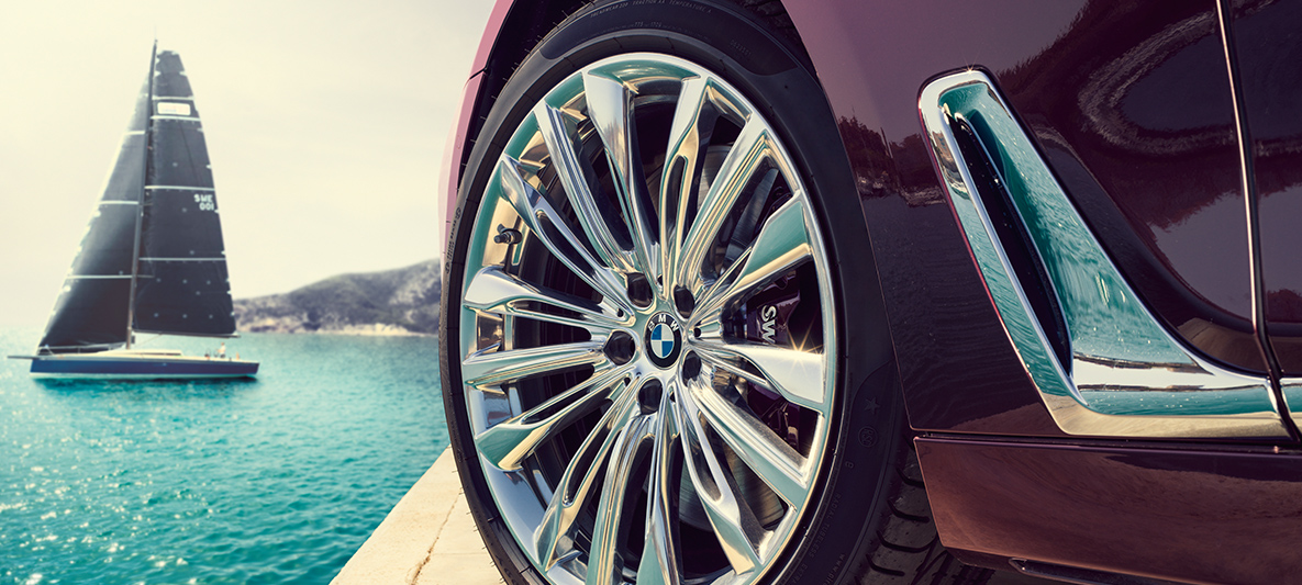 تشكّل العناصر الكريستالية الاختيارية في المصابيح الأمامية، وجمال انحناءة الركيزة C والشبك الكلوي الشكل المضيء الصورة الظلية الأنيقة لهذه السيدان الفاخرة من BMW.