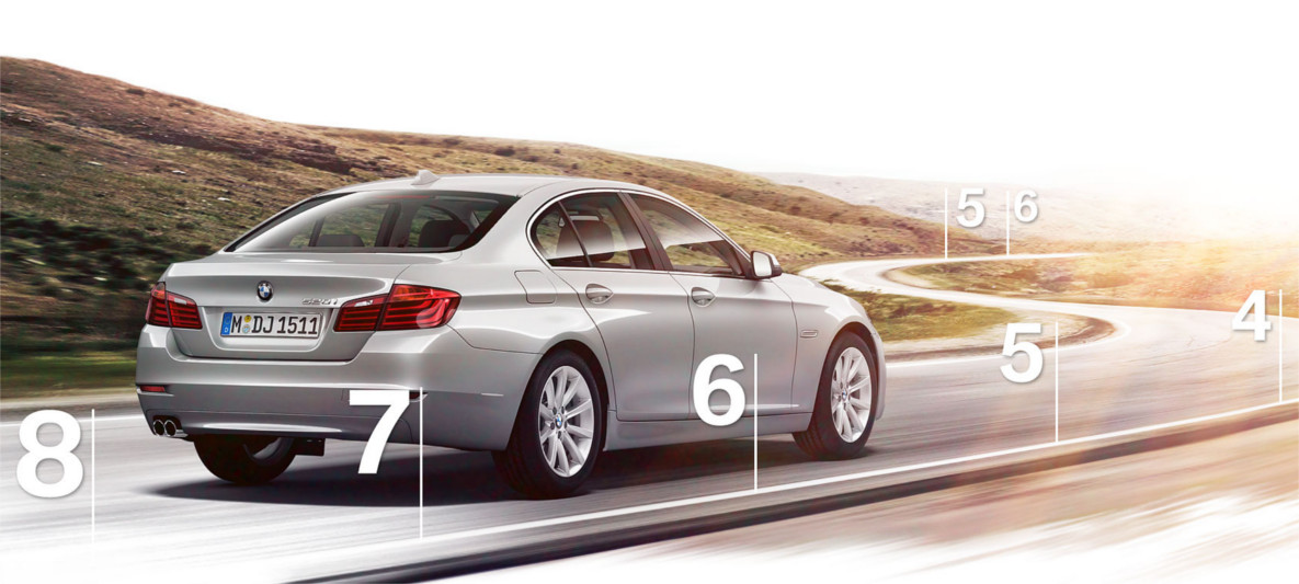 يمنحك ناقل الحركة الرياضي STEPTRONIC بثماني سرعات إمكانية تغيير مستوى التعشيق بكل سهولة لتستمتع بالقيادة والفضل يعود إلى نسب التعشيق الصغيرة والفترات القصيرة لدوران المحرك. يجمع ناقل الحركة بين أعلى مستويات الراحة والشعور بالديناميكية المذهلة ناهيك عن تخفيض استهلاك الوقود. ومع وجود وظيفة التحكم بالإطلاق، سوف تمنحك سيارة BMW فرصة تحكم مذهلة حتى أثناء الوقوف. وتكمن كلمة السر في هذه السيارة في كلمة: التسارع الأقصى. فما إن تضغط على مفتاح (DSC) وتسحب ذراع التعشيق نحو المستوى (S)، وتهيئ المكابح وتفعّل وظيفة الضغط على دواسة البنزين وترفع قدمك عن المكابح، حتى تشعر بالمعنى الحقيقي للعزم.