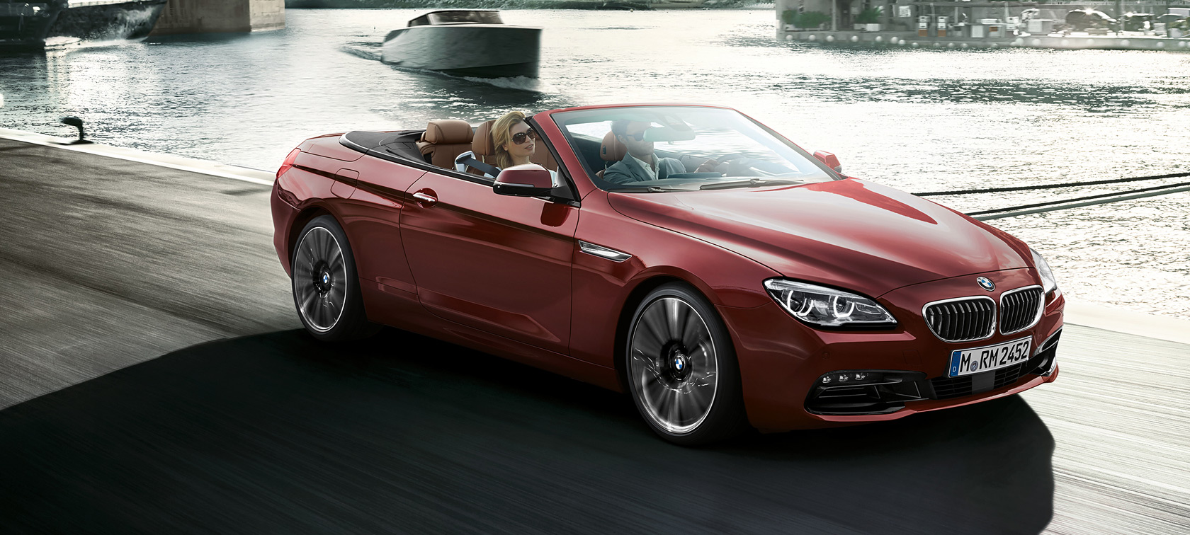 With a design inspired by sports boats, with no upward limit on the amount of fresh air on offer and in its element on smooth asphalt, the BMW 6 Series Convertible is an elegant two-door model that exudes a maritime air of lightness. The soft top disappears seamlessly into the bodywork to create a flat, harmonious shoulder line. The cockpit is dominated by sporty instrument design. And the contours and lines focus purely on aerodynamics.