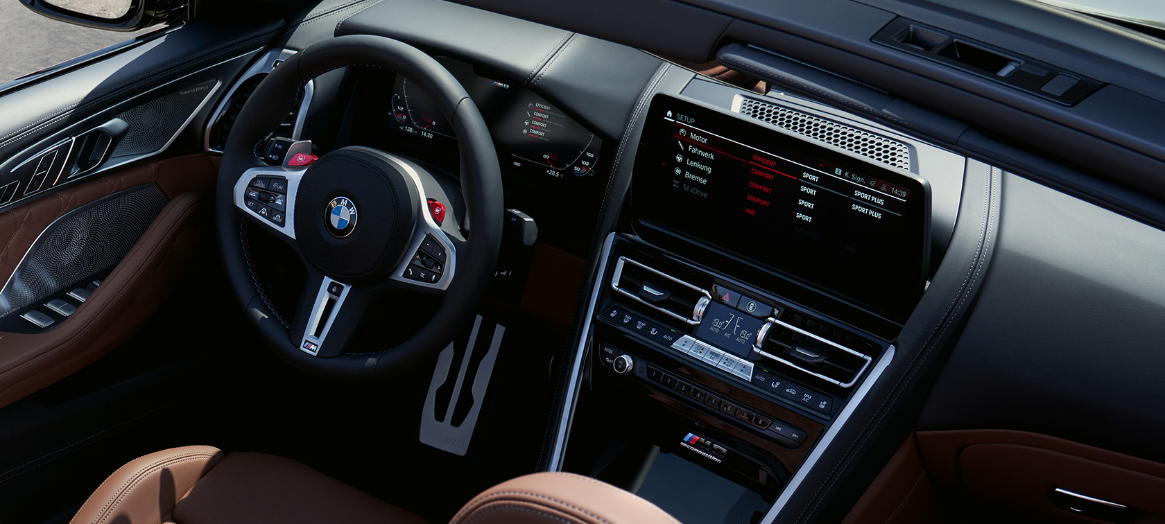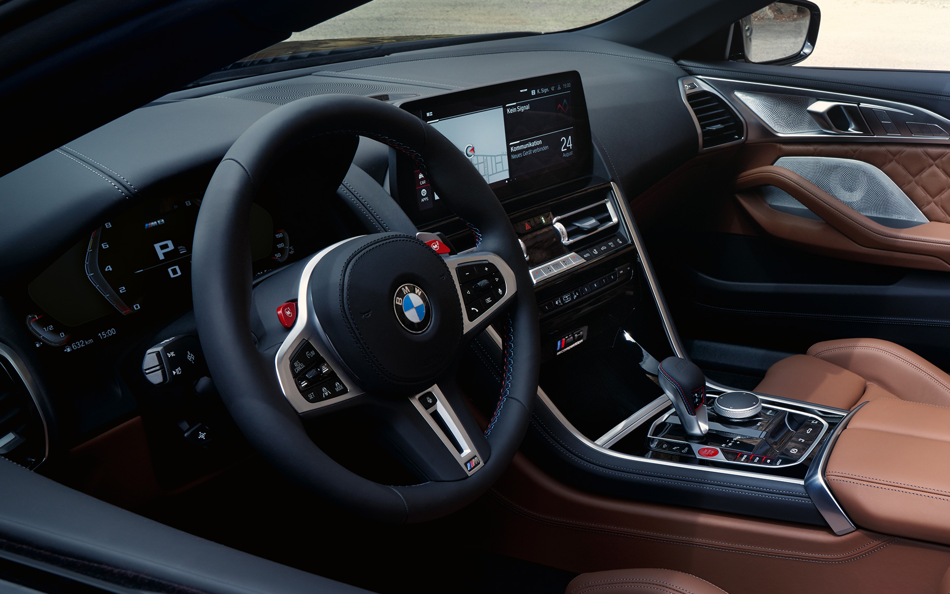 M specific instruments, operating concept, digital services and driver assistance of the new BMW 8 Series Convertible M Automobiles.