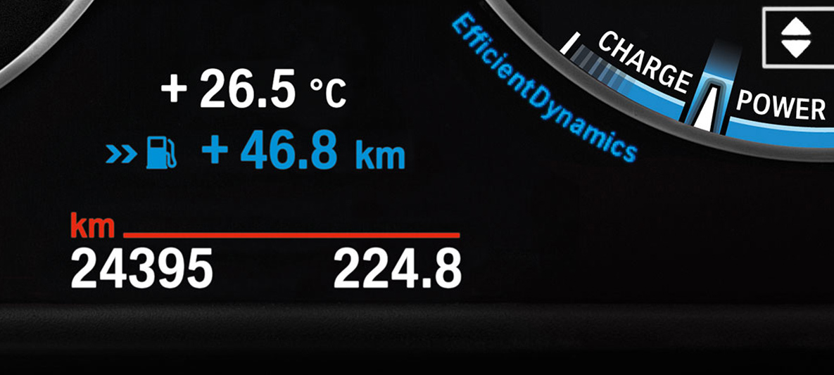 The integrated eDRIVE Counter additionally informs you of how many kilometres you have covered without the combustion engine and hence free of emissions.