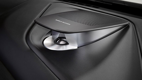 Thanks to its new Dirac Dimensions signal processing system, the Bang & Olufsen high-end surround sound system creates an open and lively atmosphere with exceptional acoustics. The incredible sound is created by 16 loudspeakers with a 1,200 W output, incl. a centre speaker that automatically extends from the dashboard. The centre speaker is a mid-range speaker and is equipped with Acoustic Lens Technology, which ensures consistent sound quality on all seats. The system offers the choice of two sound settings: "Studio" for flawless sound and "Expanded", which creates the impression of a larger acoustic space. The audiovisual experience is rounded off with the illumination of individual loudspeakers.